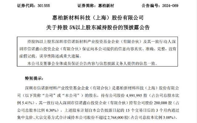 (原标题:京能热力:股东赵一波拟减持公司不超3%股份)图片来源于网络,如有侵权,请联系删除 证券时报e公司讯,京能热力(002893)12月18日晚间公告,持有公司15.58%股份的股东赵一波拟通过集中竞价、大宗交易方式,减持公司股份不超过790.92万股(占公司总股本的3%)。...